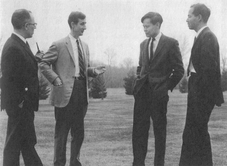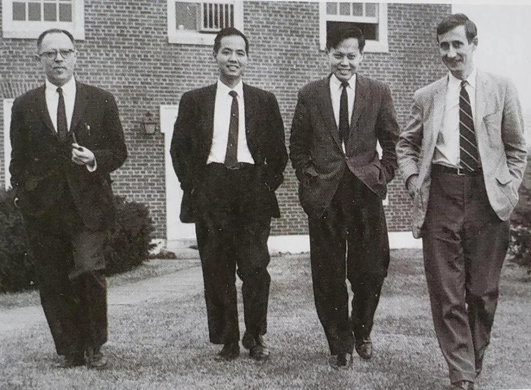 图3 派斯、戴森、杨振宁、李政道(左起)在普林斯顿高等研究院的草地上|图源:普林斯顿IAS