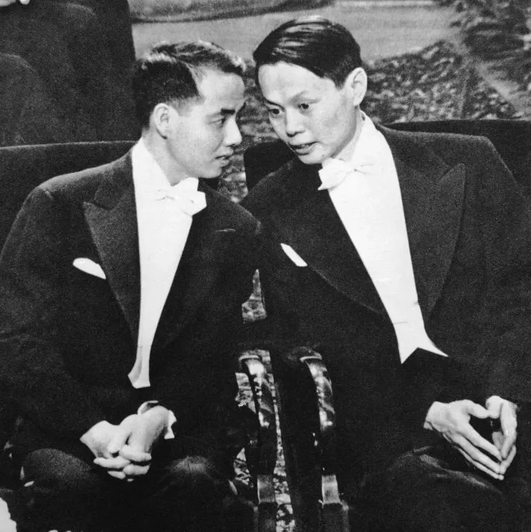 图4 杨振宁、李政道在1957年诺贝尔奖颁奖典礼上