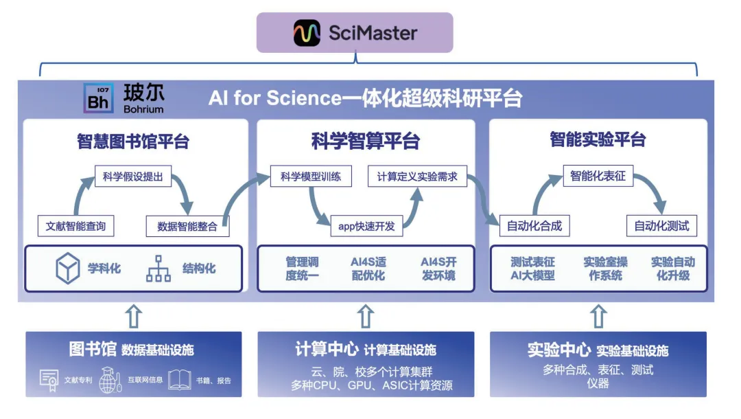 同样重要的是,如何满足用户与开发者的双方激励,推动价值创造本身变得可持续,这离不开平台的接口调用、交易支付及推荐系统的工程能力。在开发者的构建下,技术在快速演化,并逐步汇聚于以玻尔(Bohrium)科研空间站为代表的新一代“AI for Science”基础设施上。这些集托管、协同、部署于一体的科研平台为上层的科研智能体提供一个稳定、丰富且可交互的行动环境,推动科研智能体走向规模化实践。
