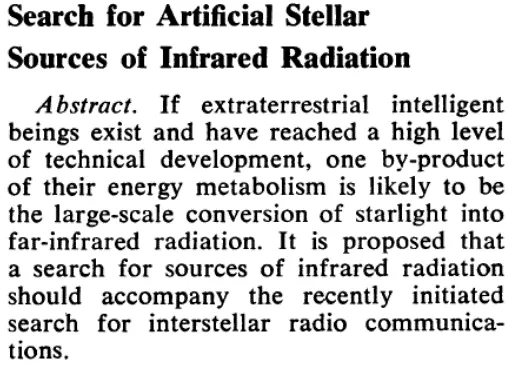 [2] Dyson, Freeman J. Search for Artificial Stellar Sources of Infrared Radiation. Science, Volume 131, Issue 3414, pp. 1667-1668(1960).