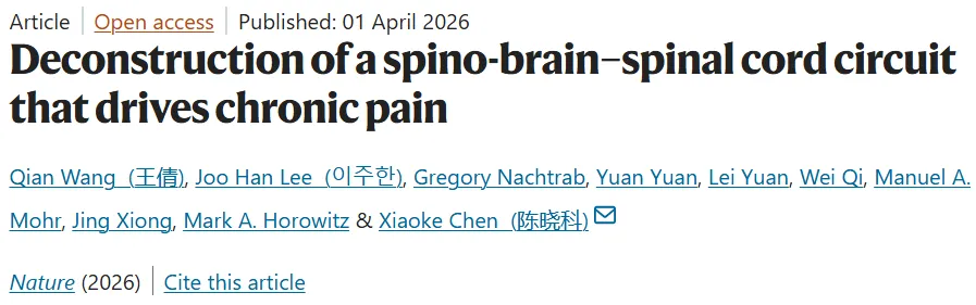 [1]Wang, Q., Lee, J.H., Nachtrab, G. et al. Deconstruction of a spino-brain–spinal cord circuit that drives chronic pain. Nature (2026). https://doi.org/10.1038/s41586-026-10296-y